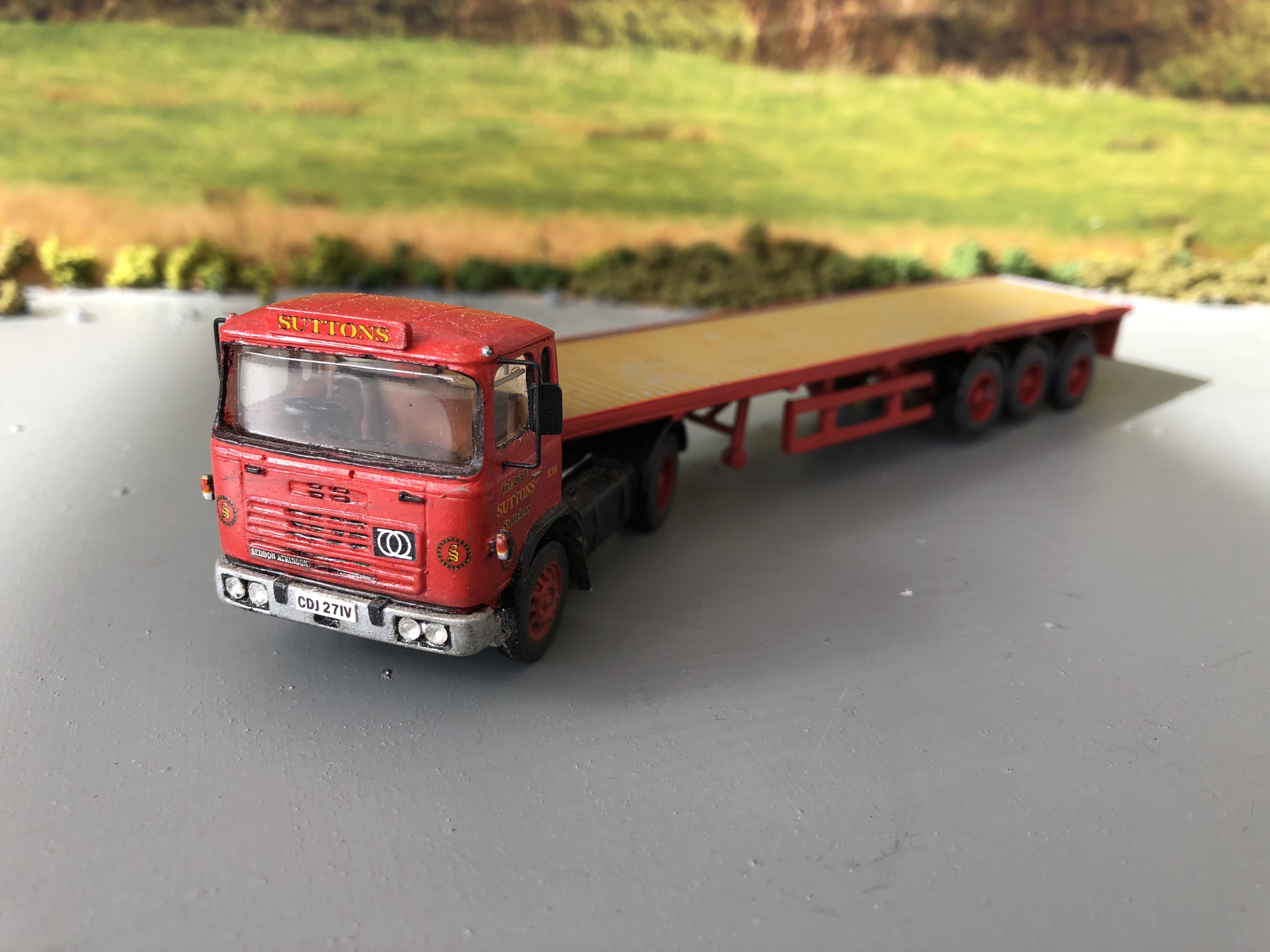 Resin cast platform, axle fitting, mudguards, fifth wheel pin and rear under-run. Six white metal super single wheels, three brass axles and white metal landing legs.
